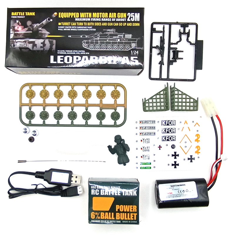 Zdalnie sterowany model niemieckiego czołgu Leopard II A5 w skali 1:24, znanego producenta HENG LONG.