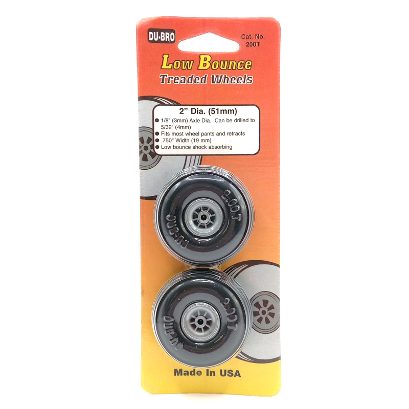 Amortyzujące wstrząsy bieżnikowe koła gumowe wyprodukowane w USA przez renomowanego producenta akcesoriów modelarskich, firmę DU-BRO.